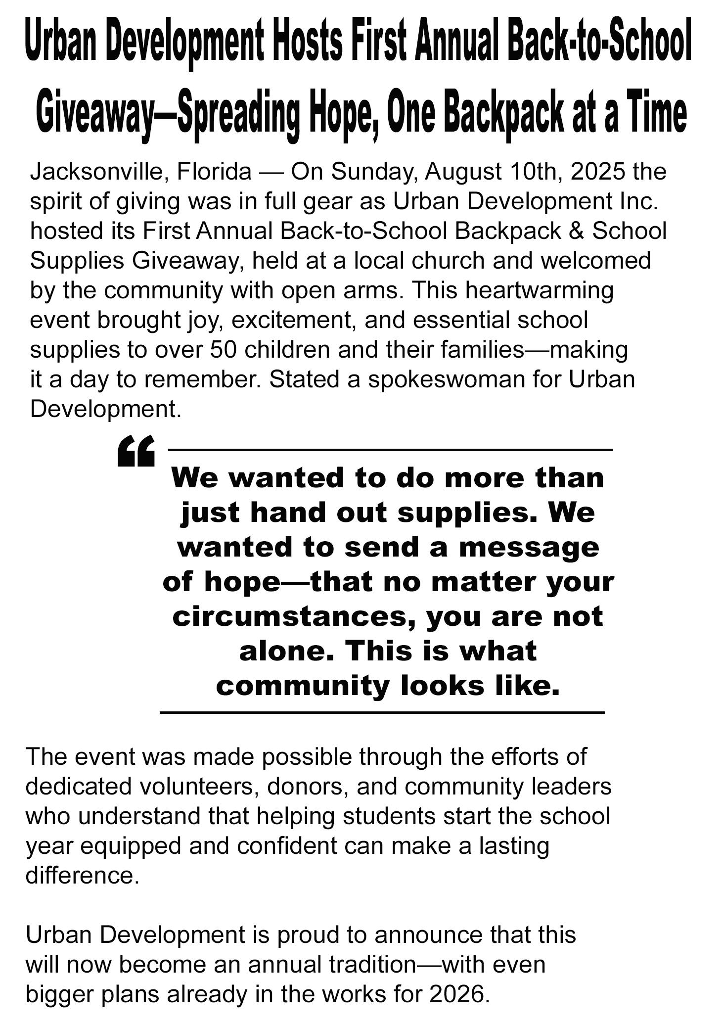 At The Urban Development Inc. Not only do we use the generous donations we receive to bring our own community events to life, but we also dedicate a portion to sponsoring and supporting nationally acclaimed organizations whose missions mirror our own—rooted in compassion, committed to equity, and devoted to creating real, lasting change.Click their icon link to explore how they're making a difference—and how you can help support their impact in the community.